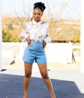 blue Shorts with button detail