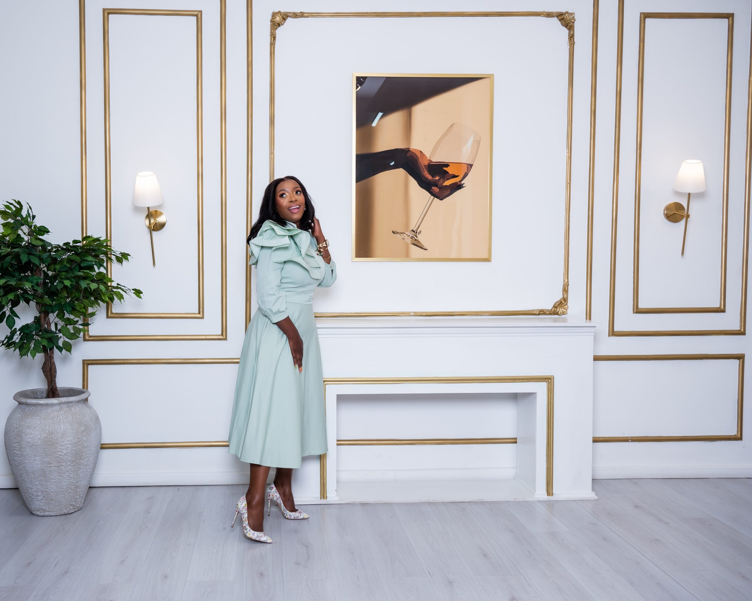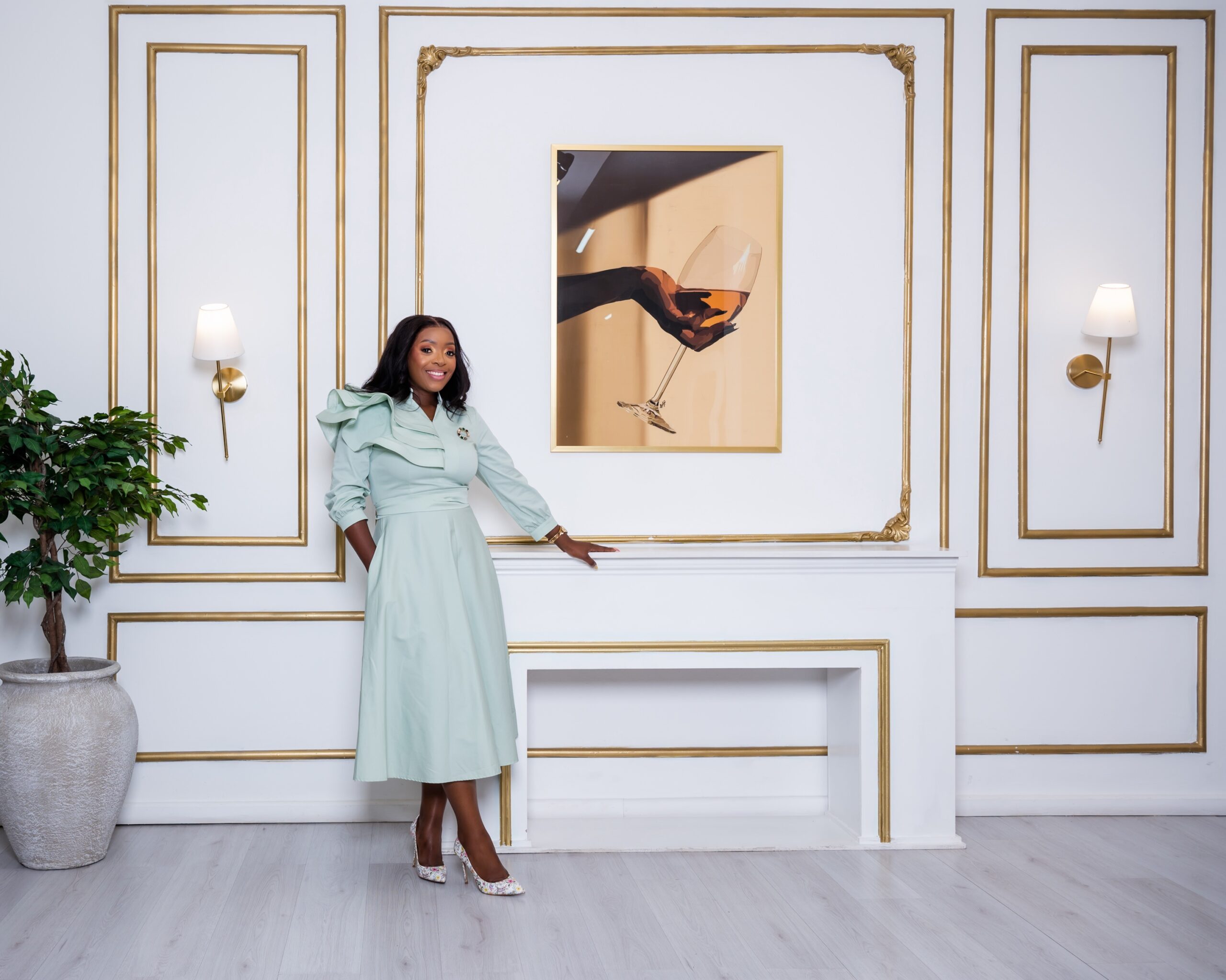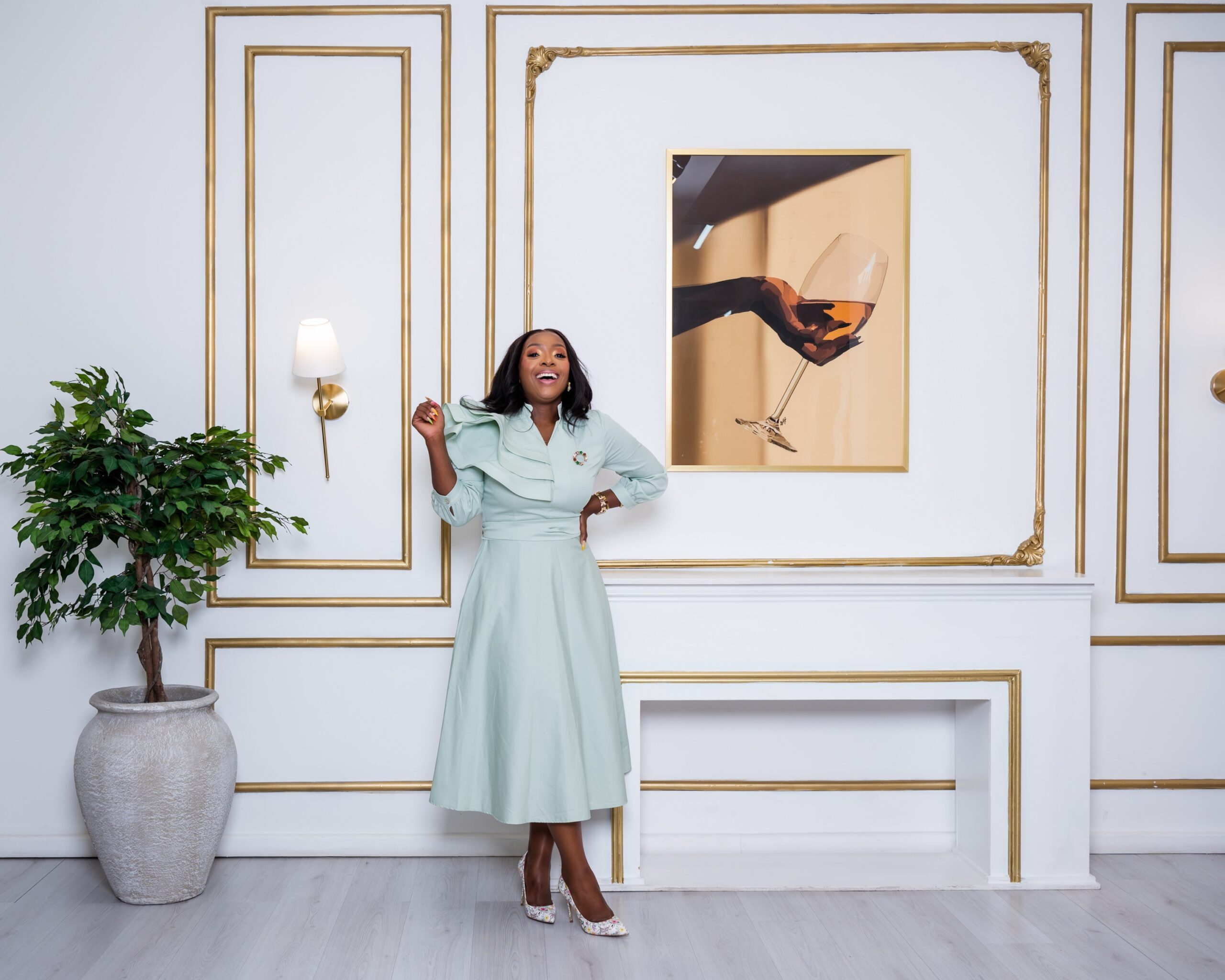 Mint Green A-line dress with shoulder grill detail, belt and pocket