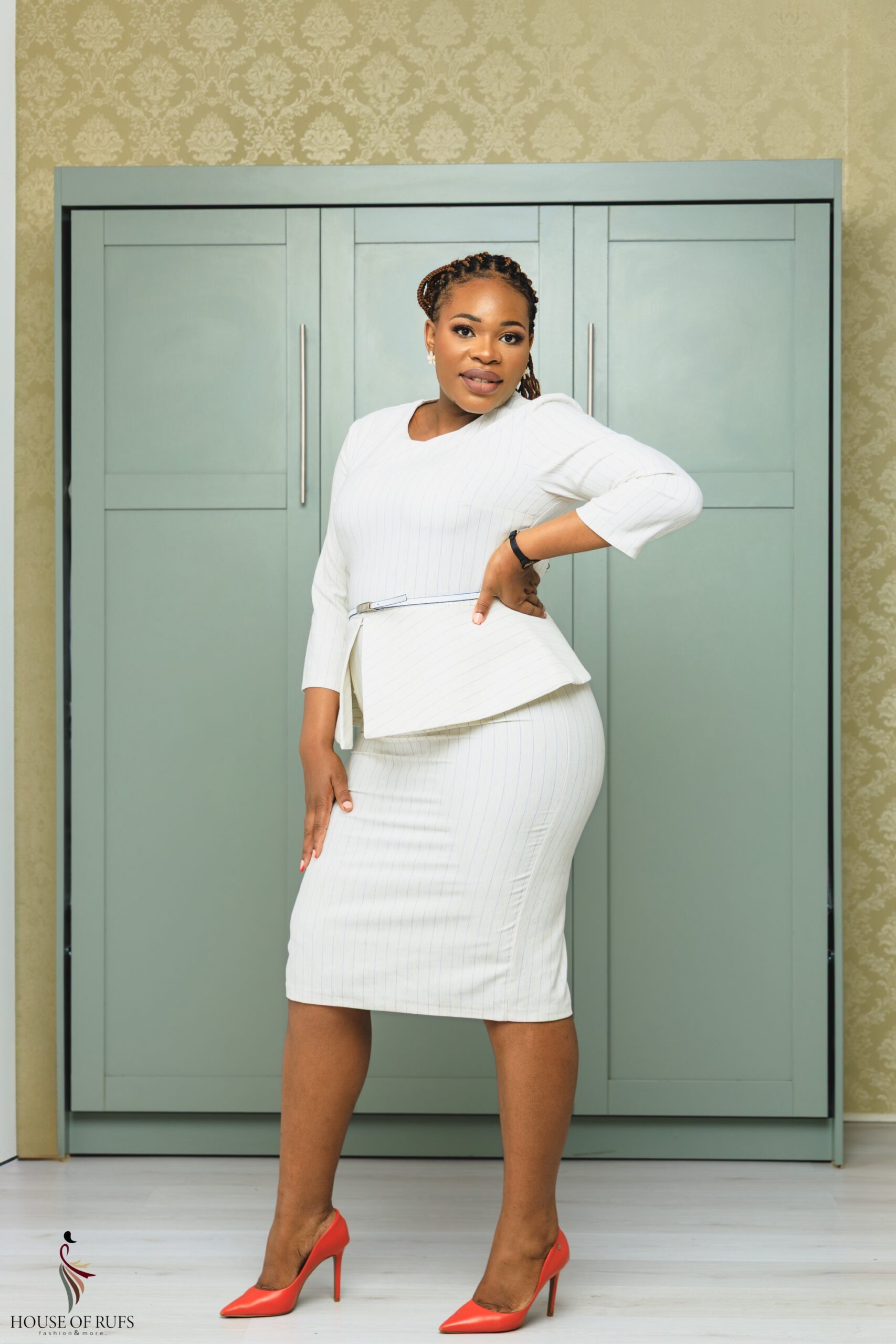 White-stripped peplum dress