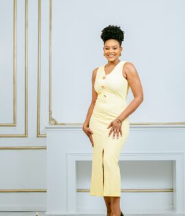 Yellow Stretch Bodycon dress with good button and front slit detail
